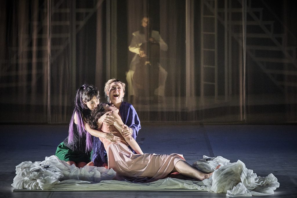 Pari réussi. Une distribution majoritairement féminine, Roméo est joué par une femme, de la musique électro, un violoncelle, beaucoup de hurlements, de galopades en long et en large de la scène, de l’humour, mais oui ! Et un texte allégé.