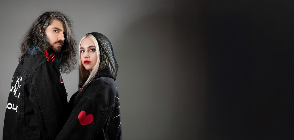 Denuit est un duo musical formé par Lis Araignée (chant) et Ivi Topp (synthétiseurs). Leur style, qu’ils appellent “night wave”, a évolué au fil du temps. Dans leurs albums Black Sun et Inferno (sortis en 2021 et 2022 respectivement) on retrouve des sonorités post punk* classiques : lignes de basse très présentes et sombres, et au niveau du chant, une profondeur et un phrasé saccadé et très rythmé qui pourrait évoquer le style vocal de Siouxsie Sioux. Le côté électronique du duo est accentué dans l’album de 2023 Ritual, plus industriel, mais aussi plus lumineux, et enfin, dans leur dernier album LOVE Violence, avec une dimension envoûtante, voire hypnotique. Le duo accorde également une grande importance à l’aspect visuel, que ce soit par leurs clips, très soignés et souvent autoproduits, ou par leur performance live, riche en jeux de scène et de lumière.