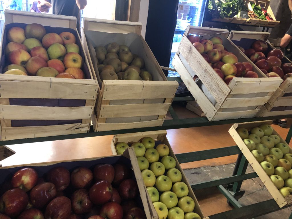 Ce vendredi soir, à la Fabrica, ambiance ruche à tous les étages ! Chacune, chacun s’affaire à installer son étal, les légumes et fruits frais du jour, les fromages de chèvre, le pain, les œufs… arrivent des pommes alléchantes, la viande et les cochonnailles, les jus de fruits et confitures… Une fébrilité joyeuse et sonore anime les participants. C’est une première, l’épicerie paysanne s’installe, et pour longtemps, on le lui souhaite !