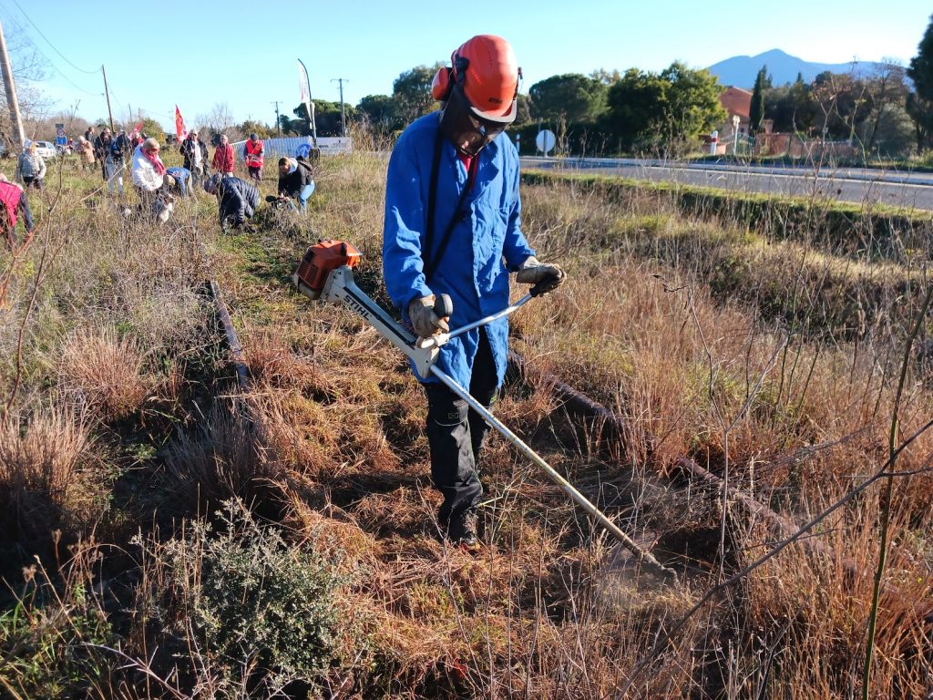 débroussaillage de la voie Céret/le Boulou/Perpignan/ Elne. L’association, avec la CGT cheminots